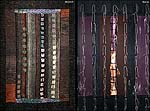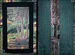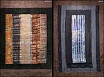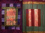 The backs of these pieces are constructed from silk and rayon fabrics, some of which have been vat dye discharged. The two panels are held together by fine threads that have been placed on a 6" grid, reminiscent of the old quilts which are so prevalent here in the mountains of North Carolina. I am sure this has been an influence in the formatting of this new work.